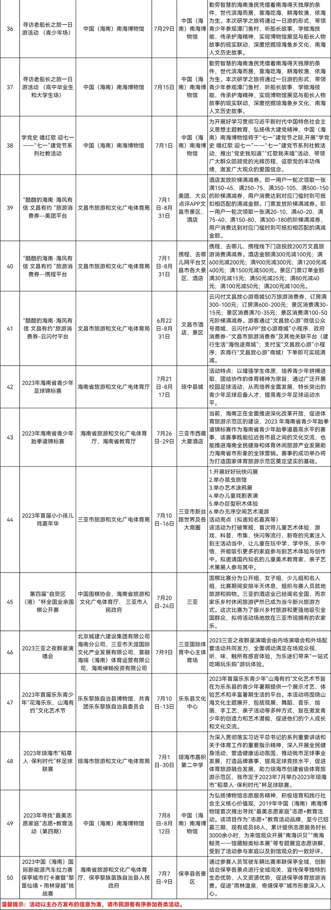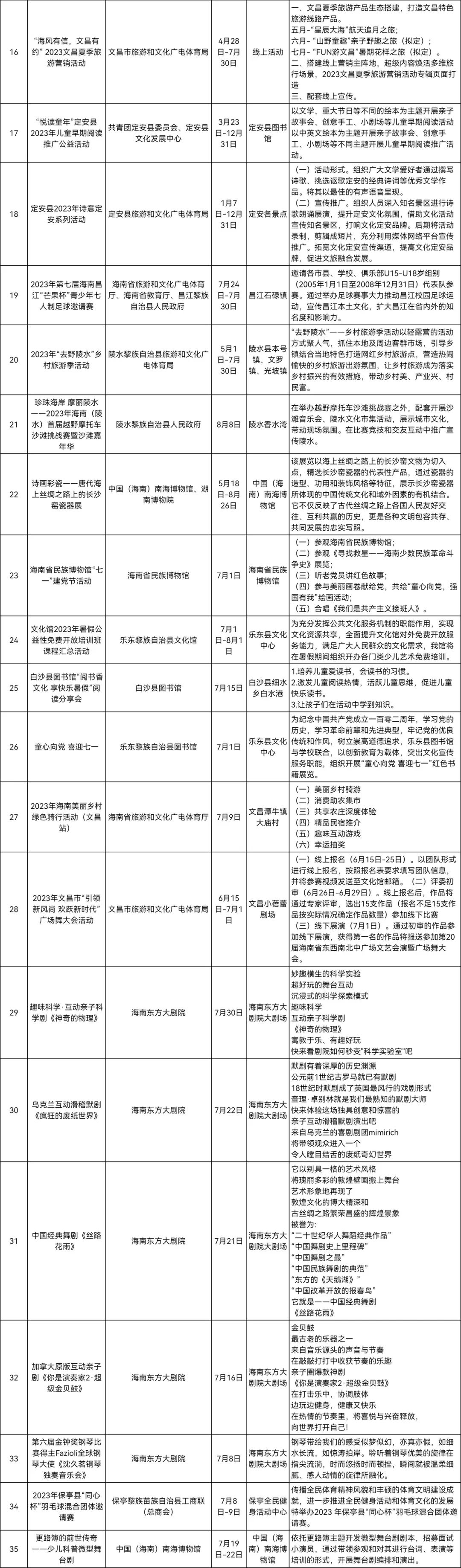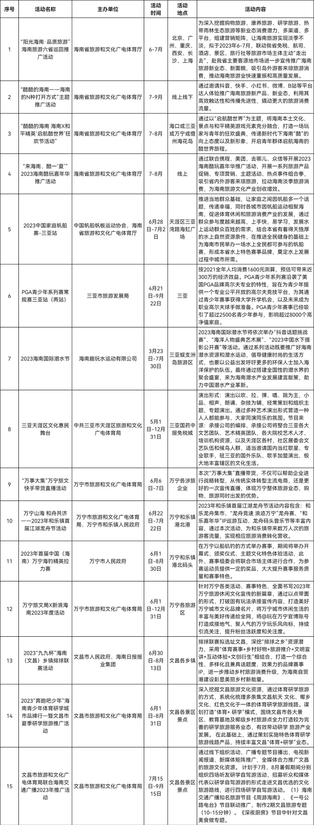 2023年7月全省旅文體計(jì)劃舉辦活動(dòng)匯總表
